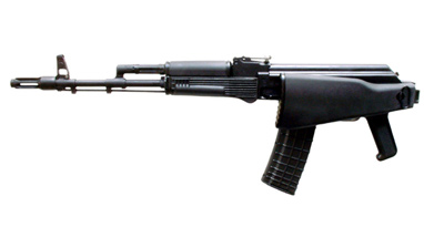 The assault rifles 5.56 mm AR-M7F belong to the firearms whose action is based on the principle of conveying a part of the powder gases through a special port in the wall of the stationary barrel and their influence onto the bolt carrier.The receiver is made of hot die forged solid blank followed by milling operations.The barrel chamber is closed by turn of the bolt, engaging the bolt lugs in the receiver.The weapon is fed from a 30-round arcuated staggered magazine, manufactured from glass fiber reinforced polycaproamide.The sight consists of sectors marked for shooting at a distance of up to 800 m.